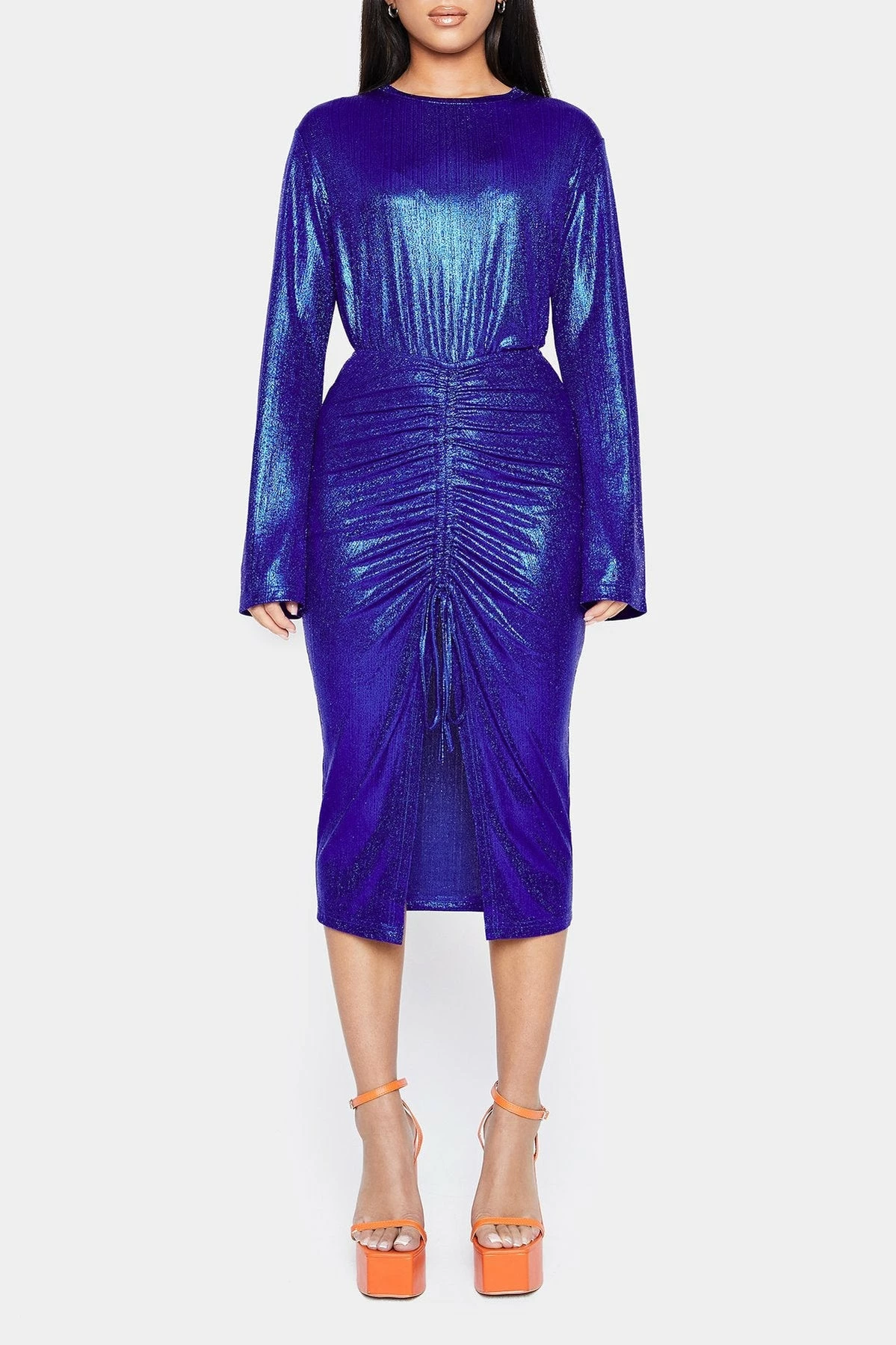 Be the first to review “SOLADO Flared Sleeve Sheen Top & Ruched Split Hem Skirt Set” Cancel reply
