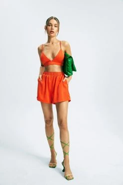 SOLADO Plunging Neck Corset Top & Elastic Waist Solid Shorts Set