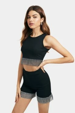 Solado Solid Sleeveless Tank Top & Rhinestone Splicing Shorts Set