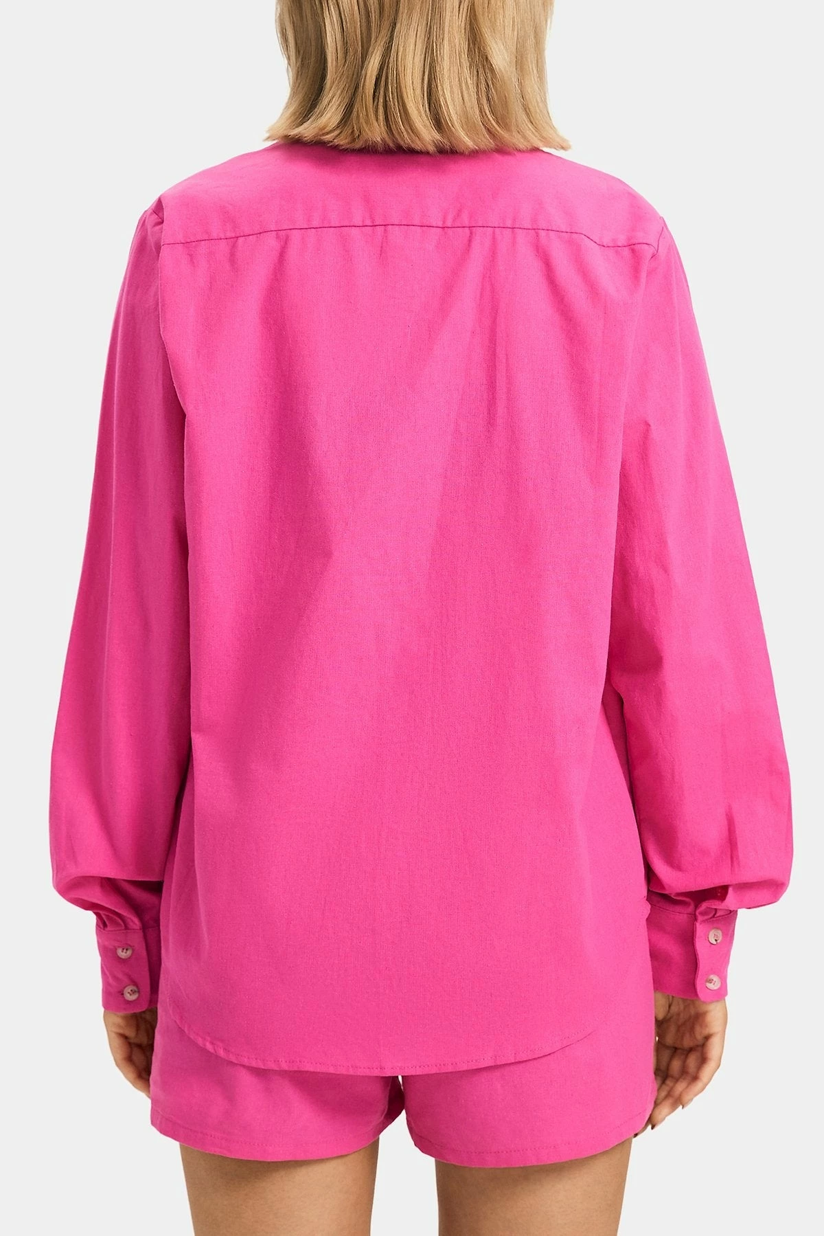 Style:CasualColor:DeepPinkSeason:Spring/Summer/AutumnNeckline:Lapel NeckSleeve Length:Long SleeveHem Shaped:SlimComposition:95% Polyester, 5% Spandex
