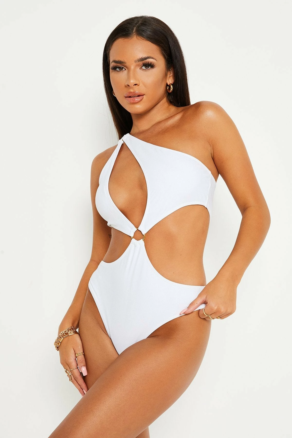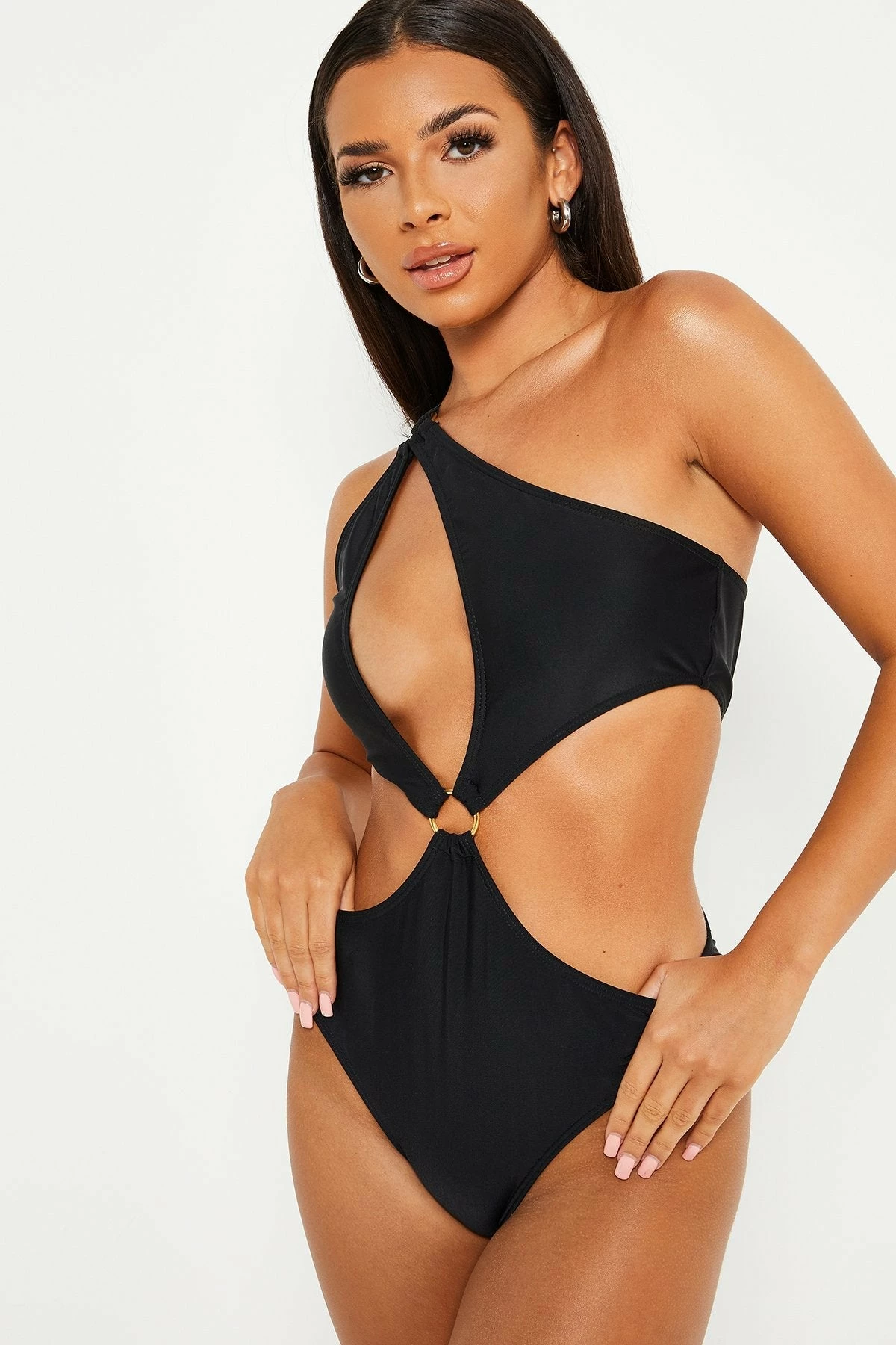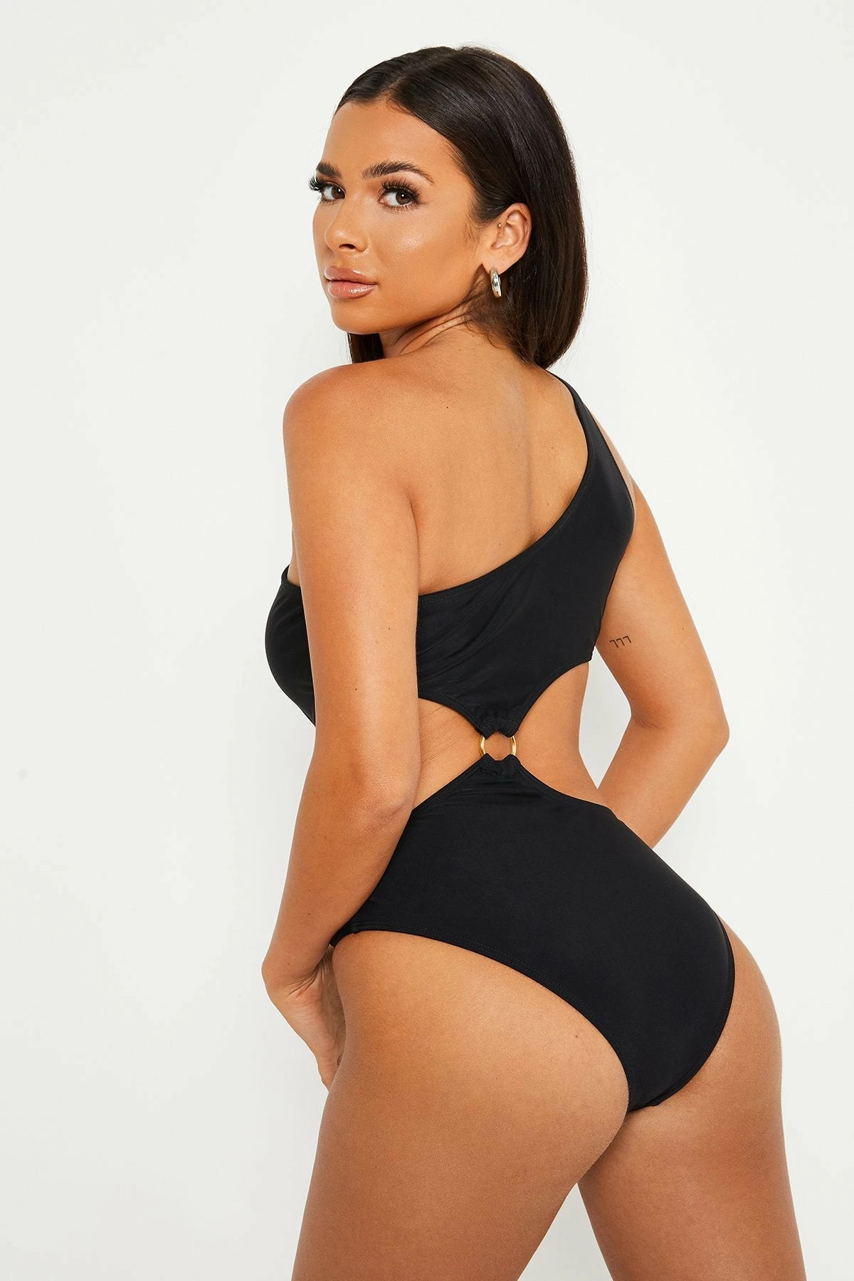 Solado One Shoulder Cut Out O-Ring Decor One-piece Swimsuit