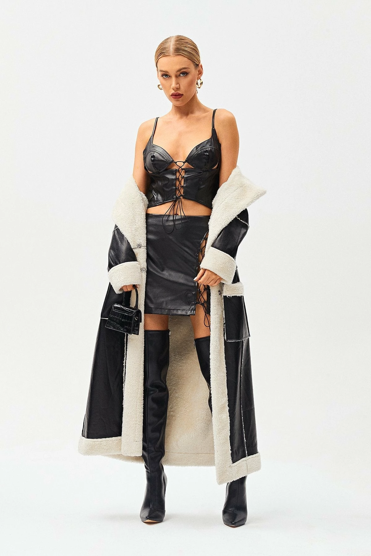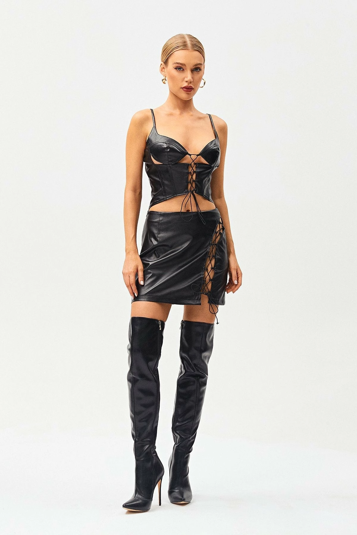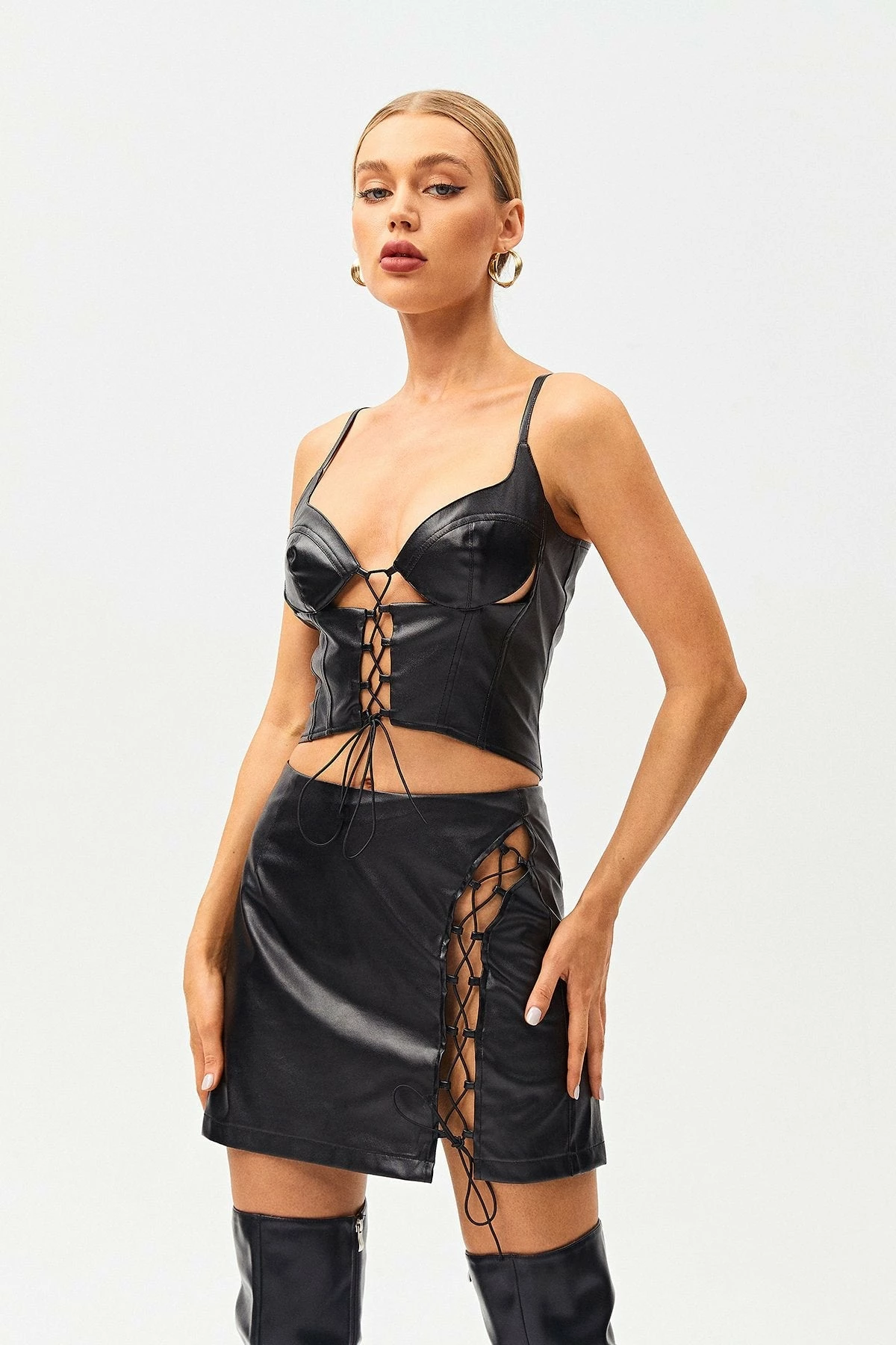 Be the first to review “SOLADO Plunging Neck Lace Up PU Leather Crop Top” Cancel reply