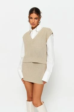 SOLADO Crochet Sleeveless Vest & Bodycon Skirt Set Without Shirt