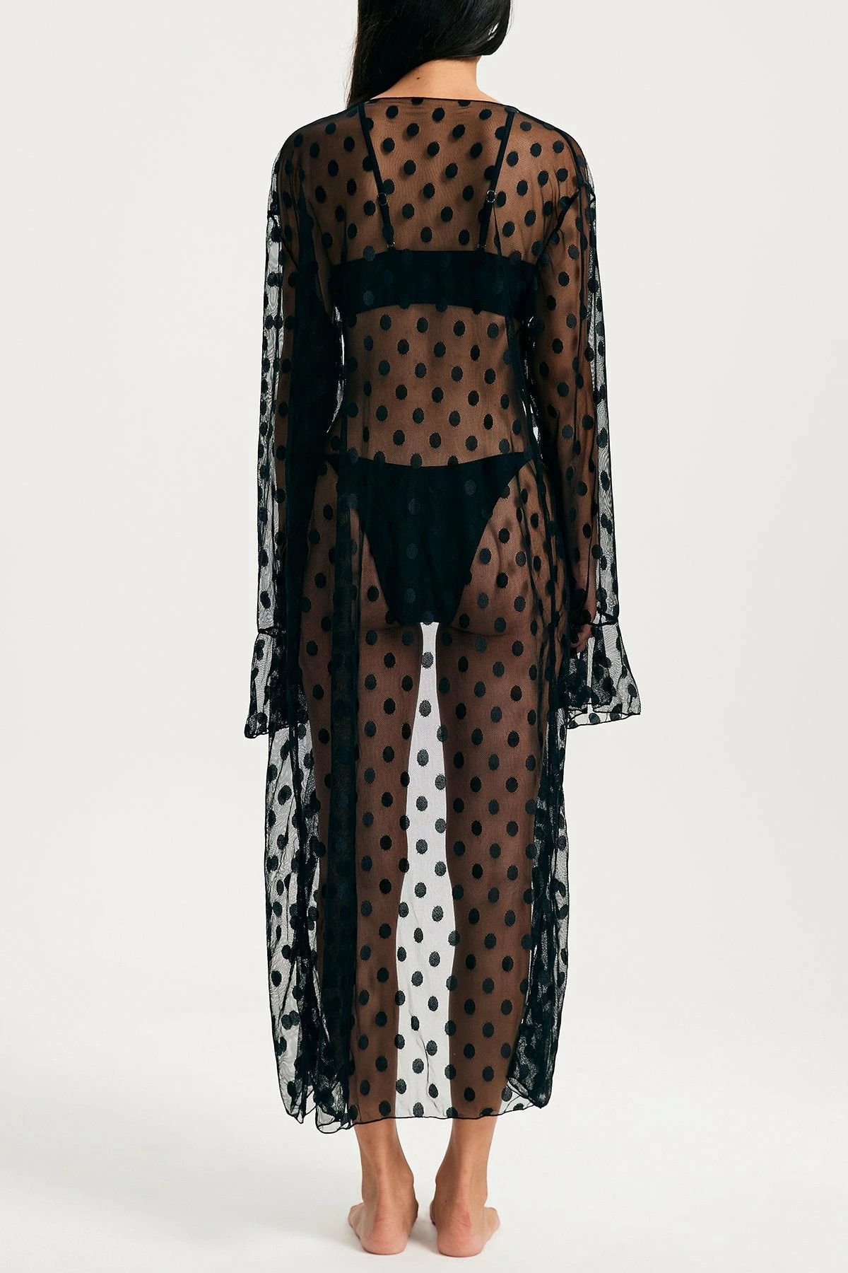 Solado Plunging Neck Solid Bikini Swimsuit With Polka Dot Kimono