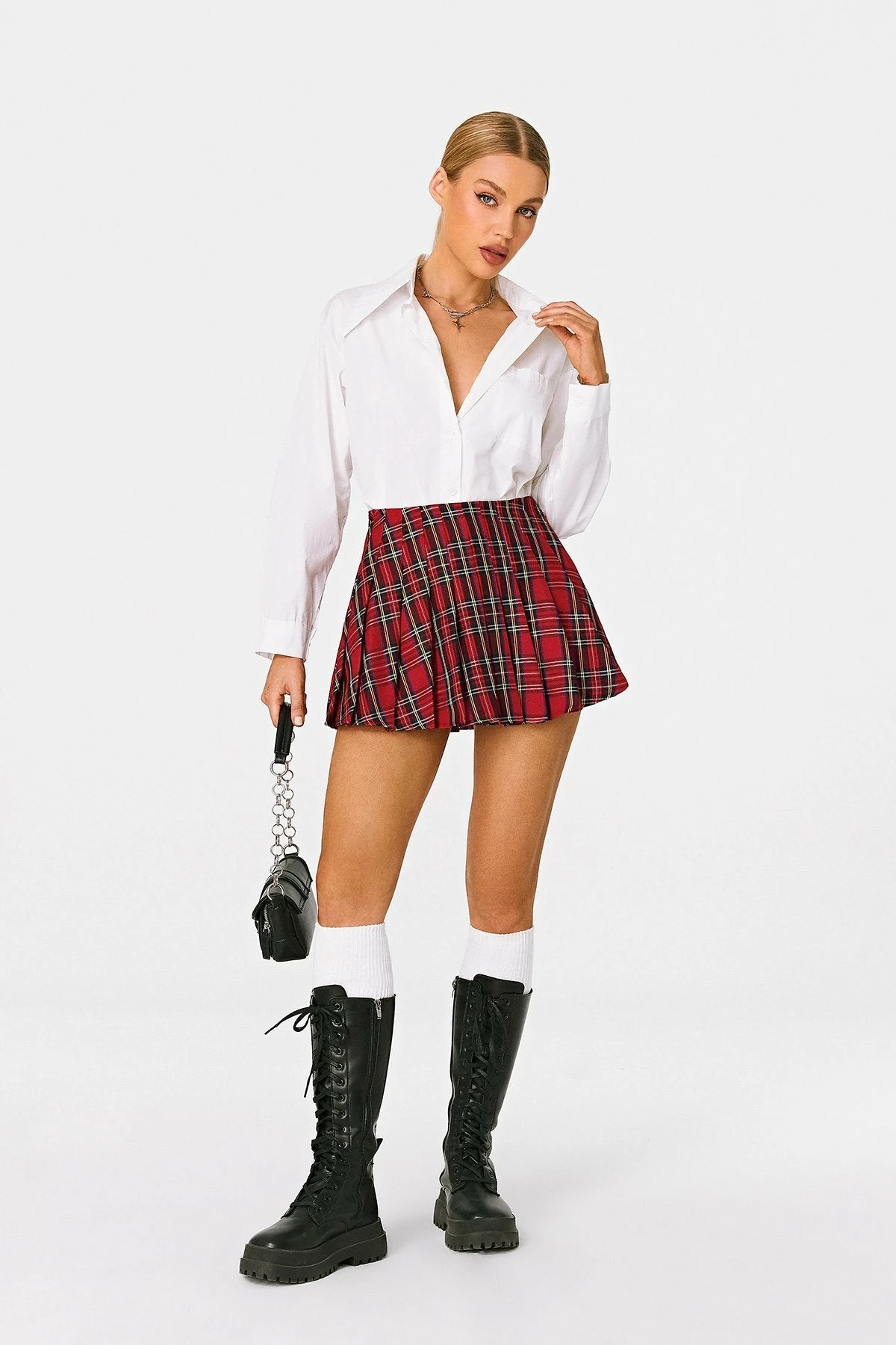 SOLADO Scottish Plaid High Waist Pleated Mini Skirt