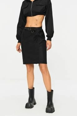 Solado Low Waist Drawstring Ruched Split Hem Mini Skirt With Belt