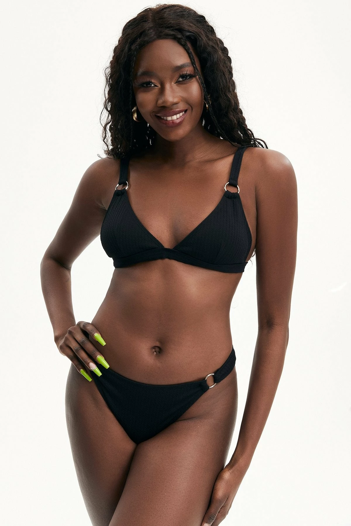 Solado Solid O-Ring Decor Ribbed Bikini Swimsuit