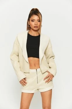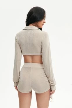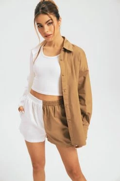 Solado Lapel Neck Long Sleeve Shirt & Two Tone Shorts Set Without Tank Top