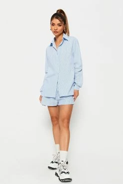 Solado Lapel Neck Long Sleeve Shirt & Stripe Print Shorts Set